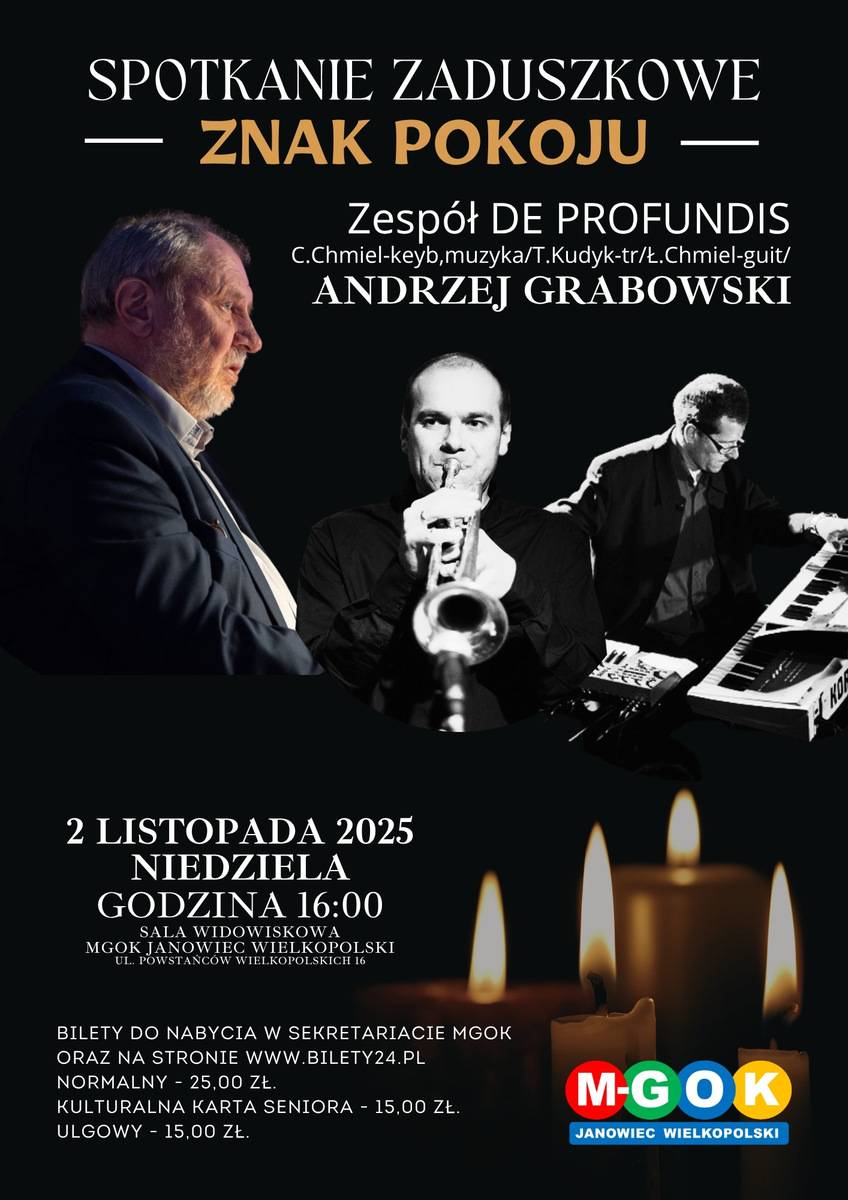 Dnia 2 listopada w Miejsko-Gminnym Ośrodku Kultury w Janowcu Wielkopolskim o godzinie 16:00 odbędzie się koncert "Znak Pokoju", w wykonaniu Andrzeja Grabowskiego i zespołu De Profundis.