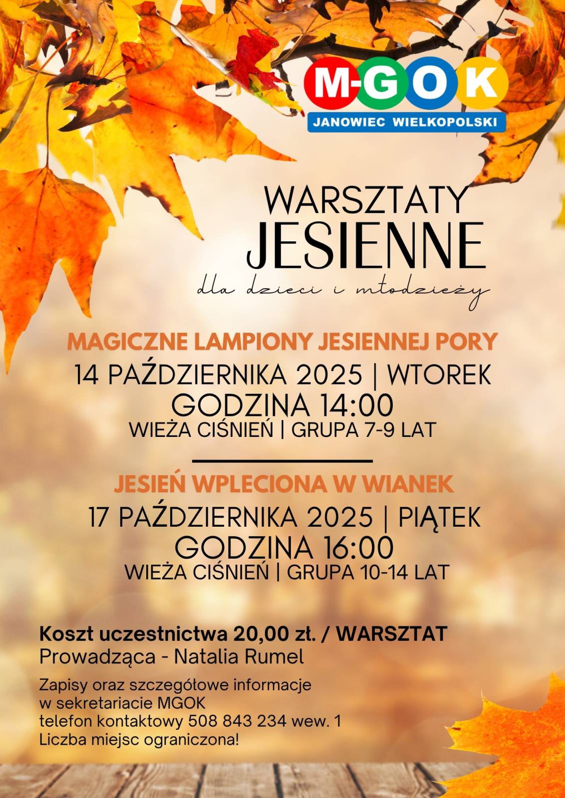 Miejsko-Gminny Ośrodek Kultury w Janowcu Wielkopolskim serdecznie zaprasza dzieci i młodzież na warsztaty jesienne.
