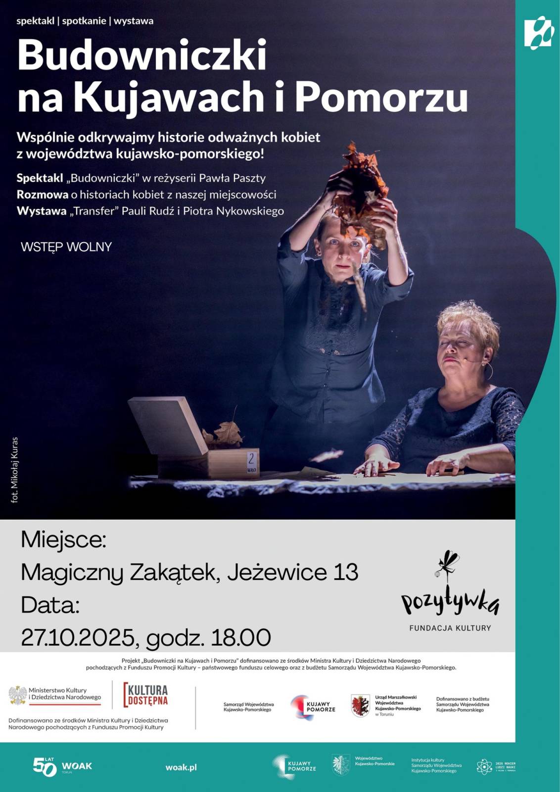 Serdecznie zapraszamy na spektakl w Magicznym Zakątku w Jeżewicach dnia 27 października o godzinie 18:00 na spektakl "Budowniczki na Kujawach i Pomorzu".