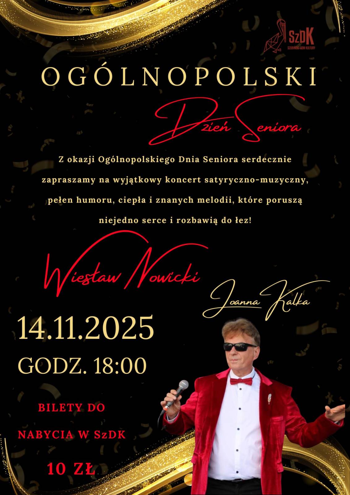 Szubiński Dom Kultury serdecznie zaprasza wszystkich seniorów na koncert satyryczno-muzyczny, który odbędzie się dnia 14 listopada o godz. 18:00.