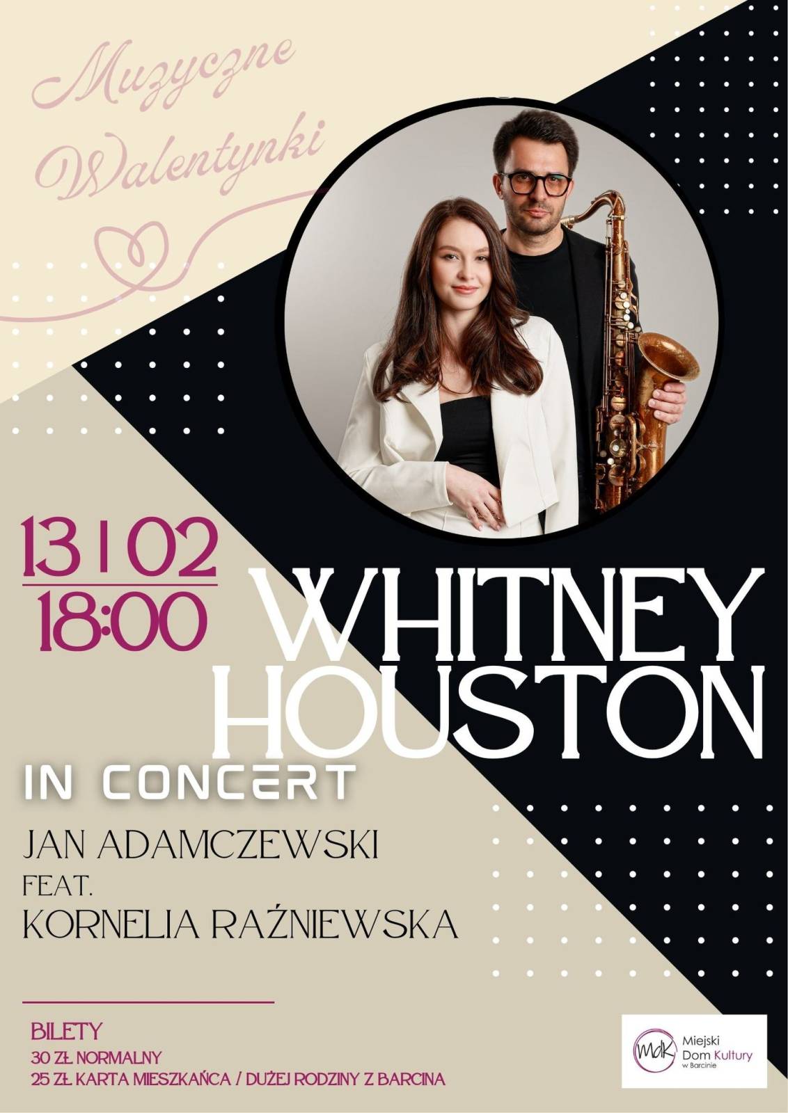 Serdecznie zapraszamy dnia 13lutego o godzinie 18:00 do Miejskiego Domu Kultury w Barcinie na wyjątkowy koncert „Whitney Houston in Concert”!