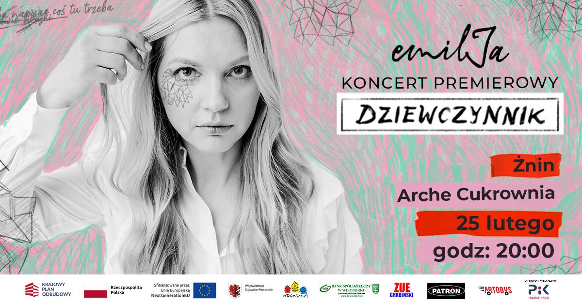 Zapraszamy na premierowy koncert emilJa – „DZIEWCZYNNIK”, który odbędzie się 25 lutego o godzinie 20:00 w wyjątkowej przestrzeni Cukrowni Arche w Żninie.