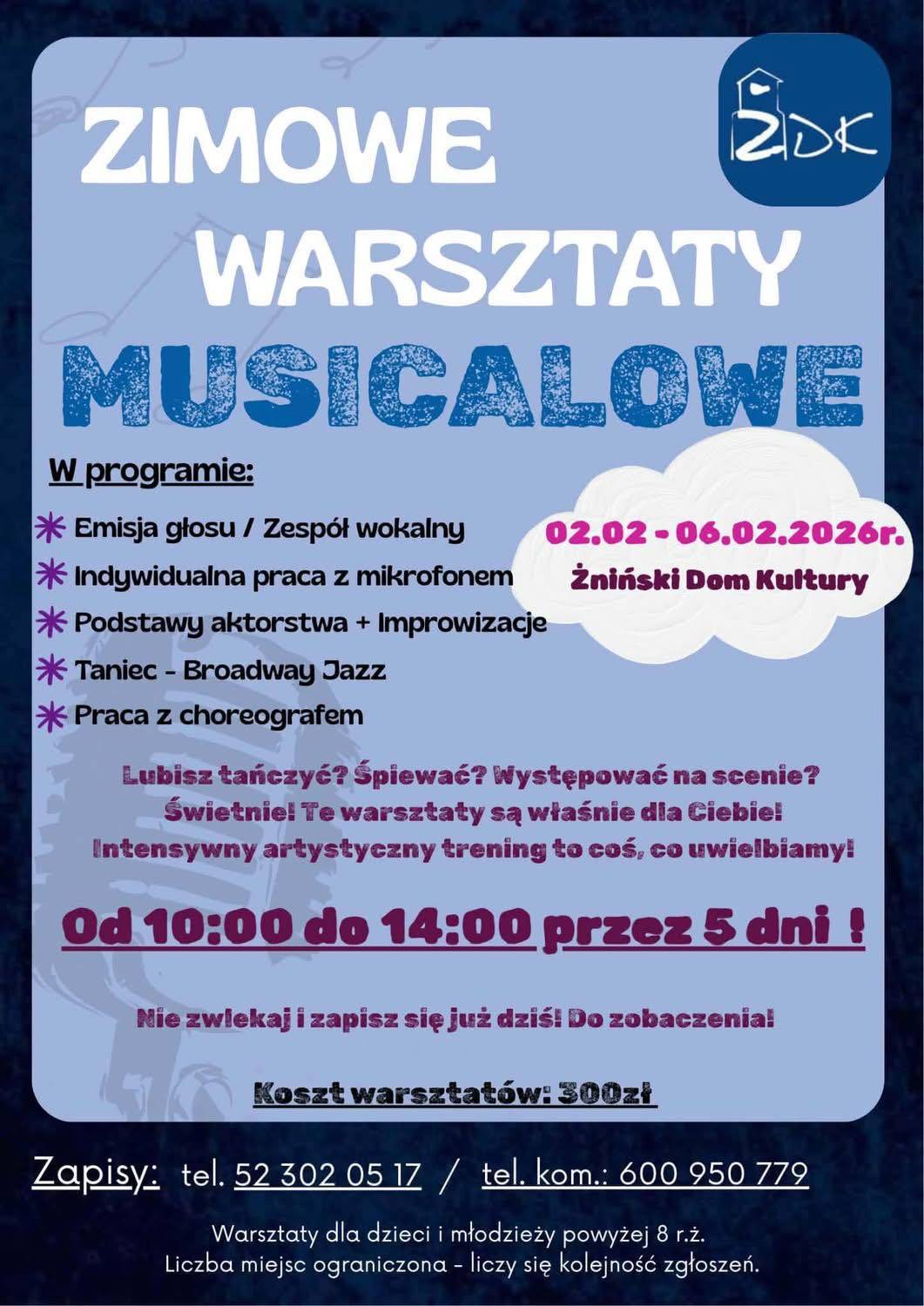 Żniński Dom Kultury serdecznie zaprasza wszystkie dzieci do aktywnego spędzenia ferii zimowych.